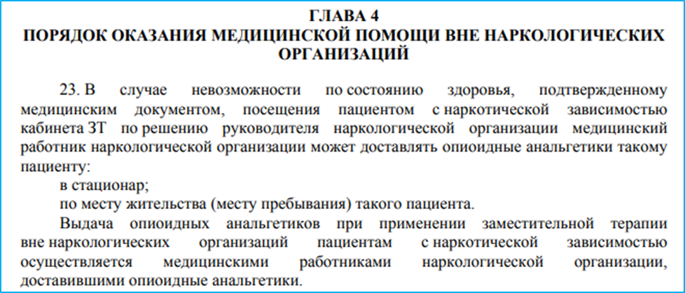Согласно «ИНСТРУКЦИИ об оказании медицинской помощи пациентам с синдромом зависимости от наркотических средств опийной группы», утверждённой «Постановлением Министерства здравоохранения Республики Беларусь 20.08.2021 № 98», участники ОЗТ имеют право на получение препаратов в иных лечебных учреждениях при госпитализации: